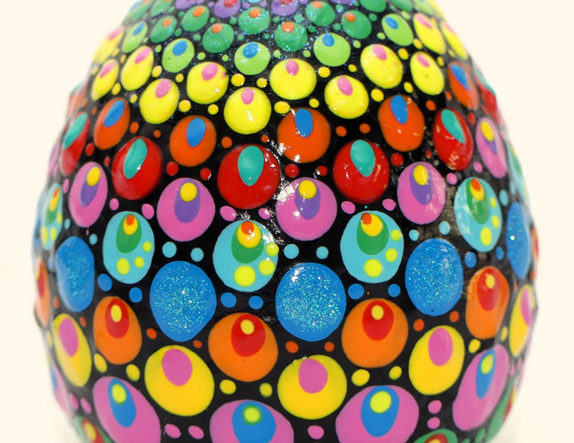 In der Nahaufnahme sieht man deutlich die Liebe zum Detail. Dieses Mandala-Ei ist ein Einzelstück/Unikat.