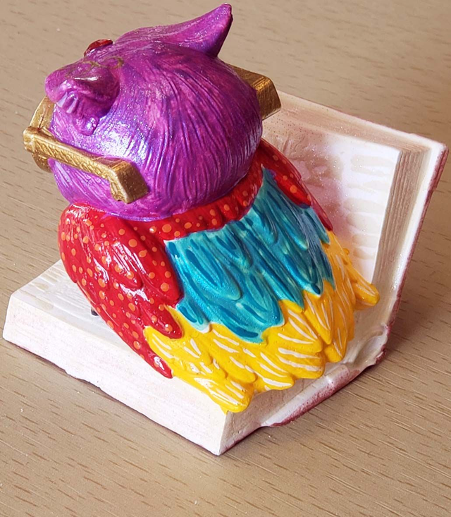 Diese wunderschöne Mini-Eule mit aufgeschlagenem Buch ist ein echter Hingucker für jeden Raum. Sie ist in liebevoller Handarbeit bemalt und ein echtes Kunstwerk. Die Farben sind leuchtend und die Muster im Mandala-Stil sind ein echter Blickfang.
